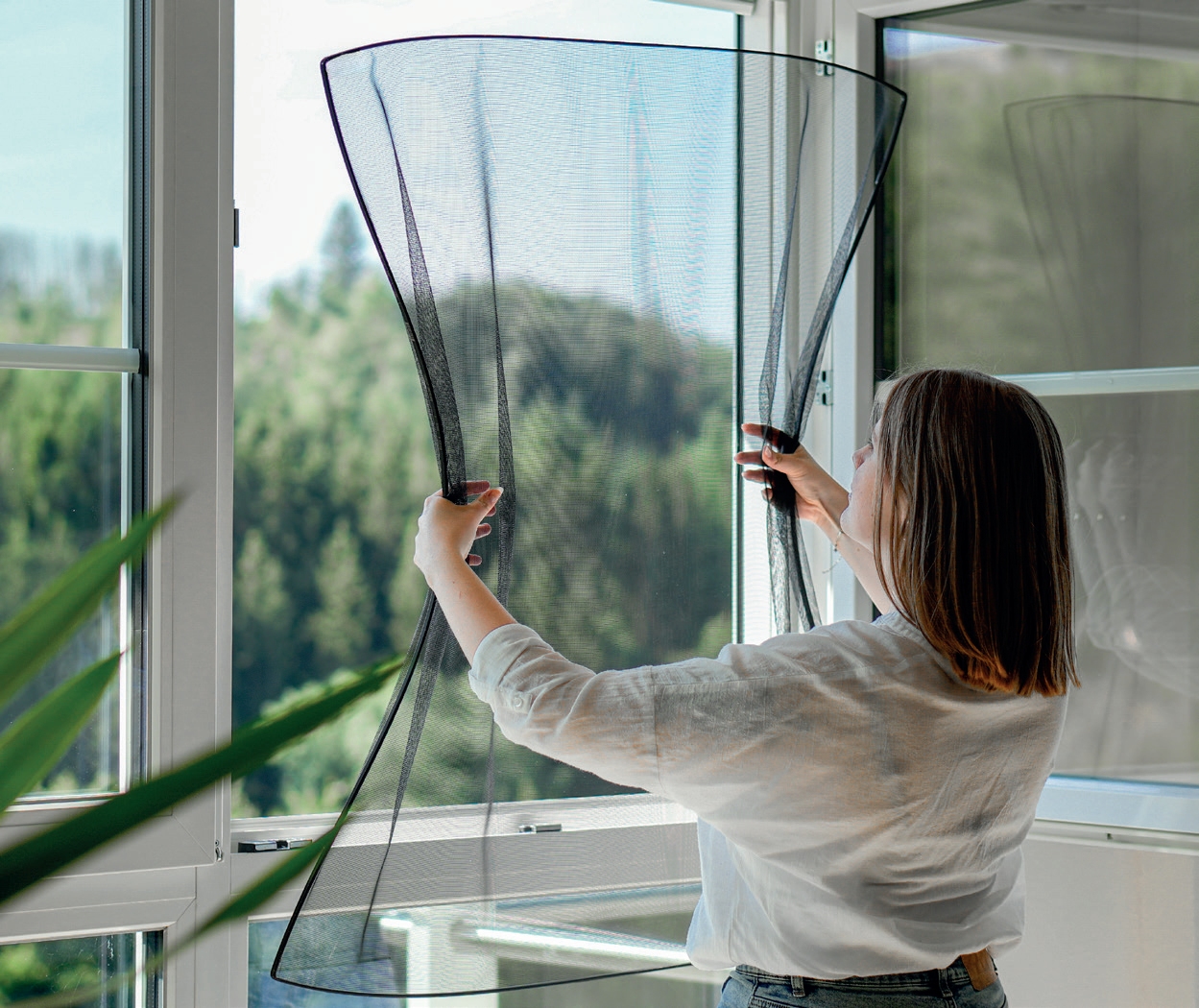 FlexScreen doskonale nadaje się do popularnych okien uchylno-rozwiernych. Okno pozostaje w pełni funkcjonalne, bez potrzeby usuwania moskitiery.