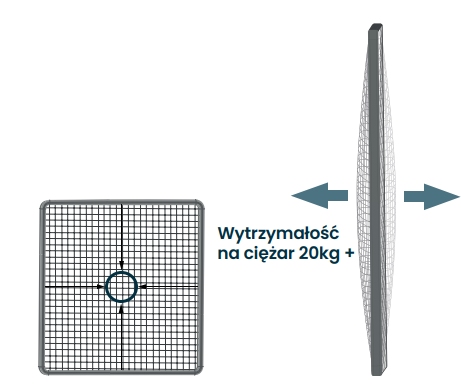 FlexScreen był testowany wytrzymałościowo. Siatka może utrzymać 20 kilogramów bez żadnych problemów, pozostając w ramce FlexScreen. Jest to ciężar odpowiadający skrzynce z napojami.